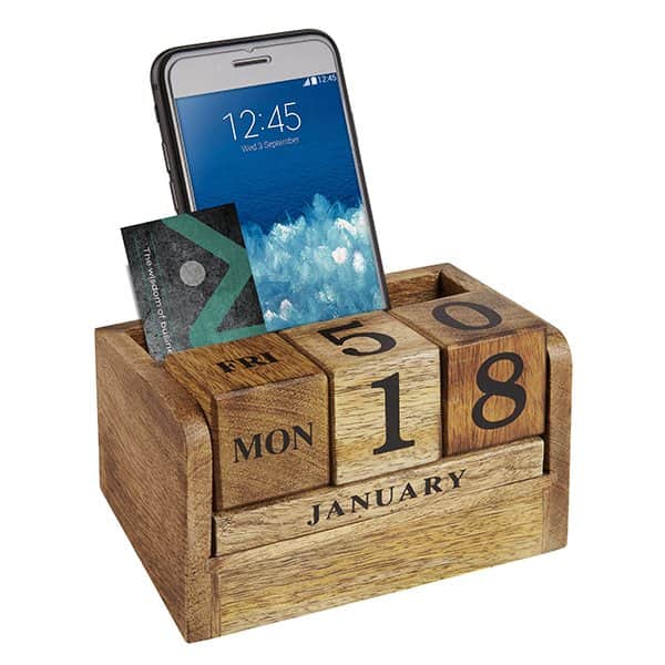 מעמד קלנדר-תאריכון קוביות עץ טבעי עם מעמד כרטיסי ביקור וניידים