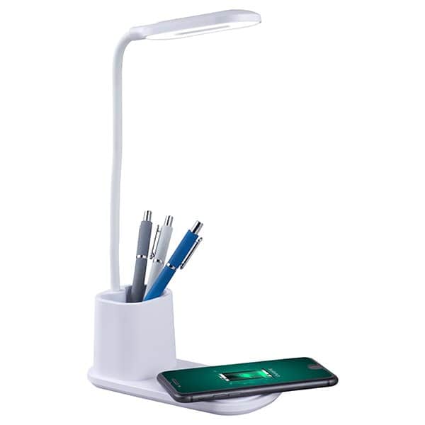 מנורת ליד שולחנית משולבת עם מעמד טעינה אלחוטי 10 W, וכוס לעטים